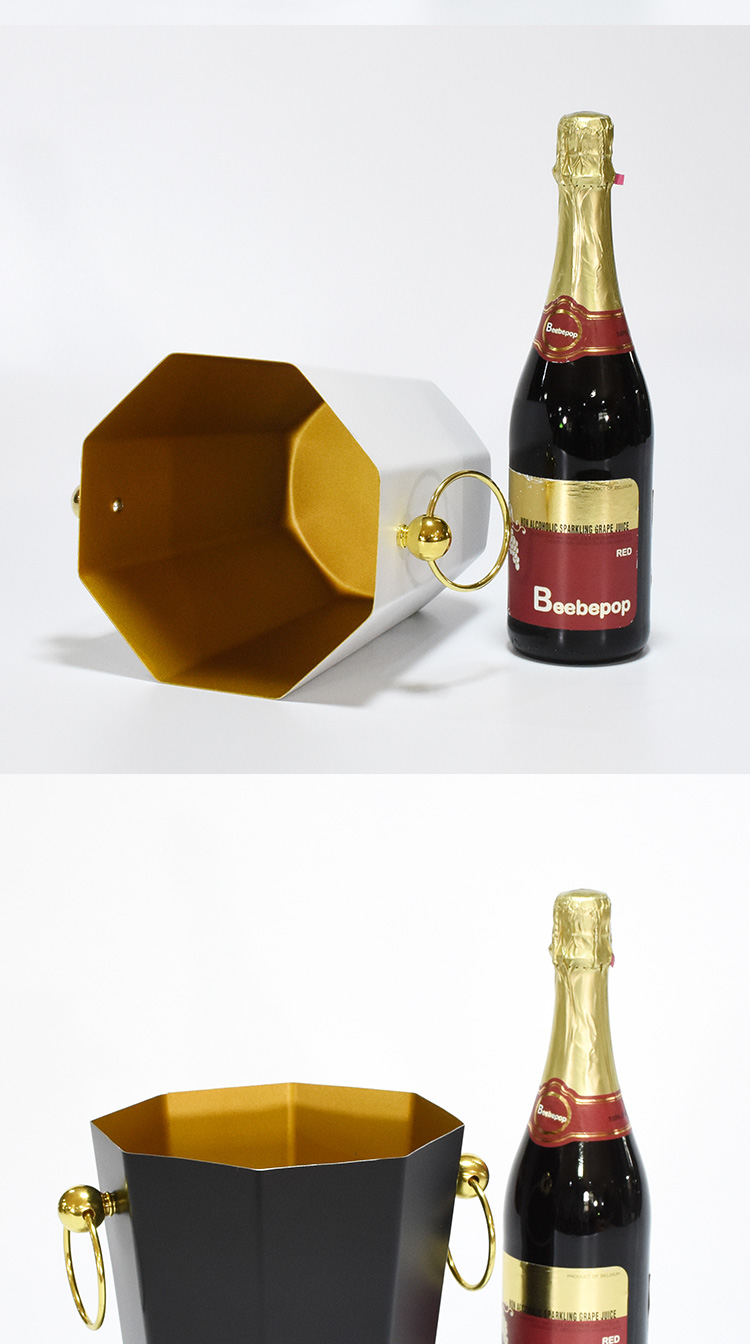 China hot sale octagonal decoration champagne bucket wine beer cooler stainless steel ice bucket with round handle