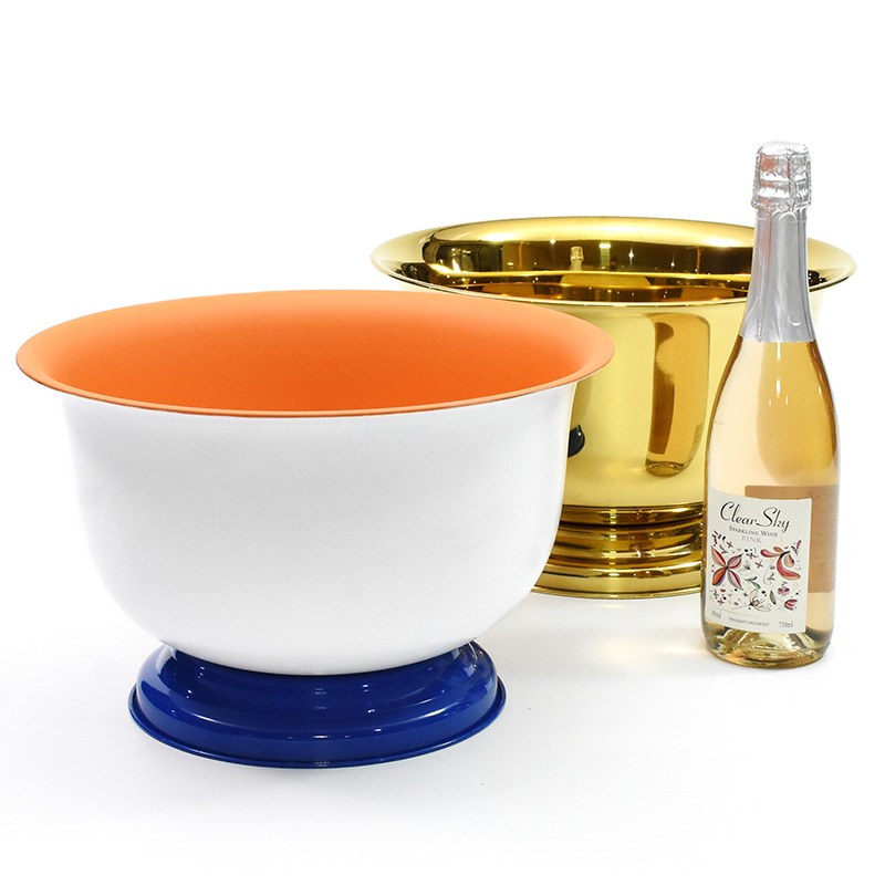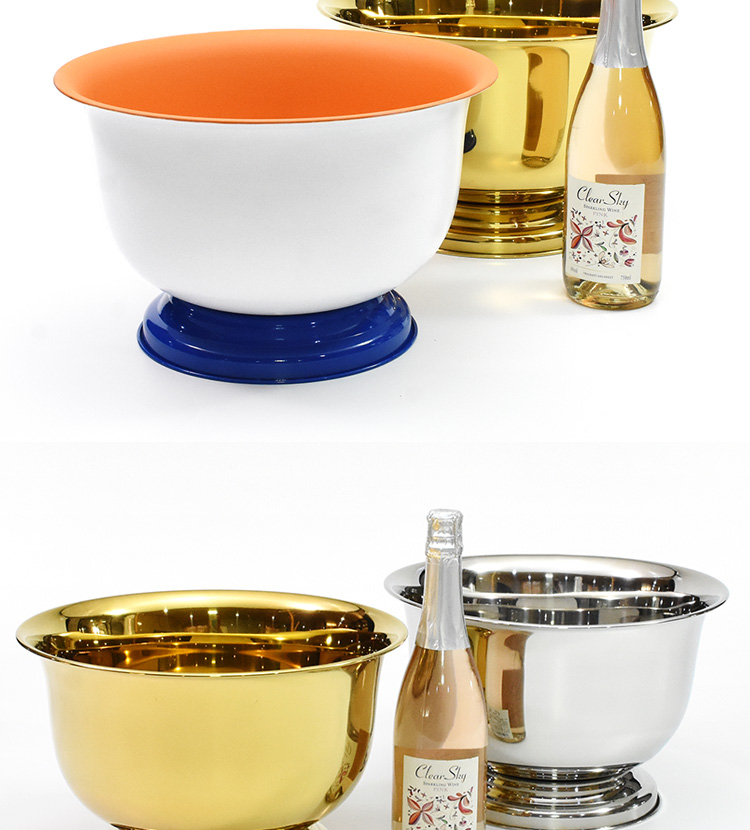 Stainless steel ice bucket allows the entire bottle of champagne to be refrigerated for a longer period of time.