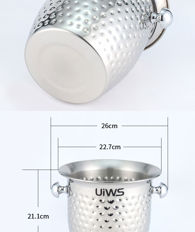 Stainless steel ice bucket allows the entire bottle of champagne to be refrigerated for a longer period of time.
