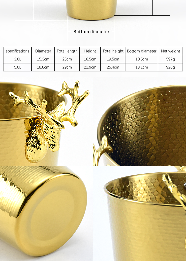 Ktv bar 3/5l hammer antler stainless steel ice bucket cooling champagne wine bucket
