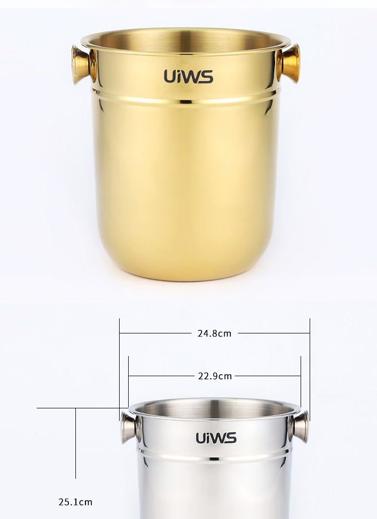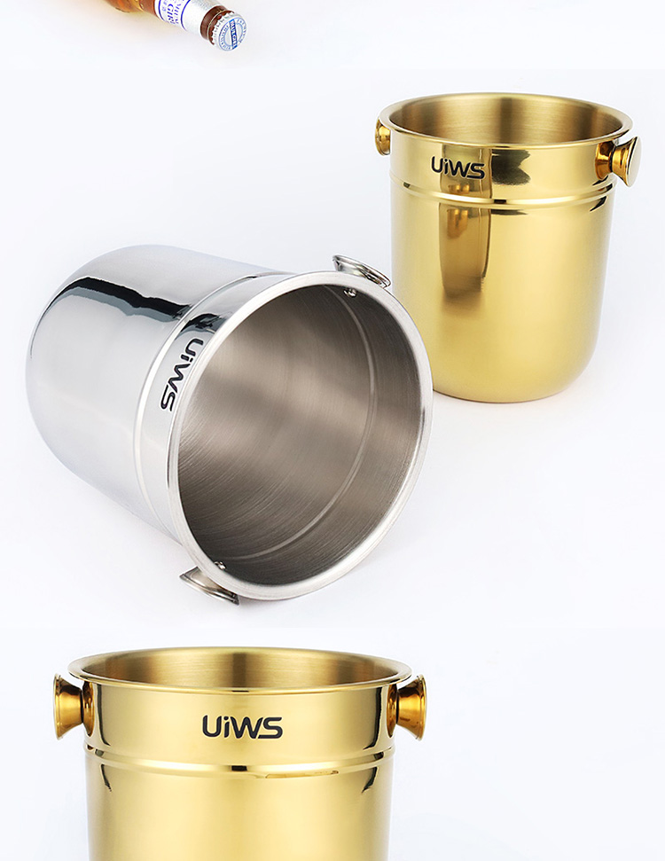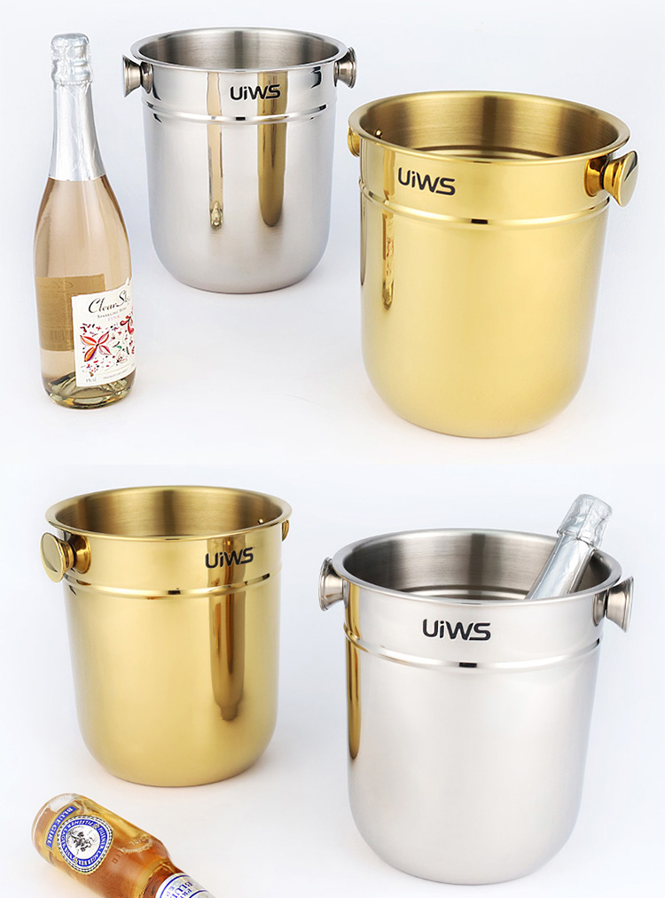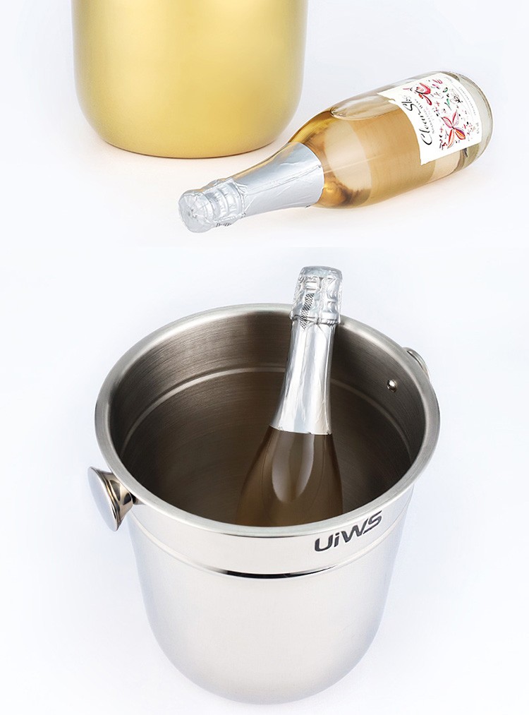 Stainless steel ice bucket allows the entire bottle of champagne to be refrigerated for a longer period of time.