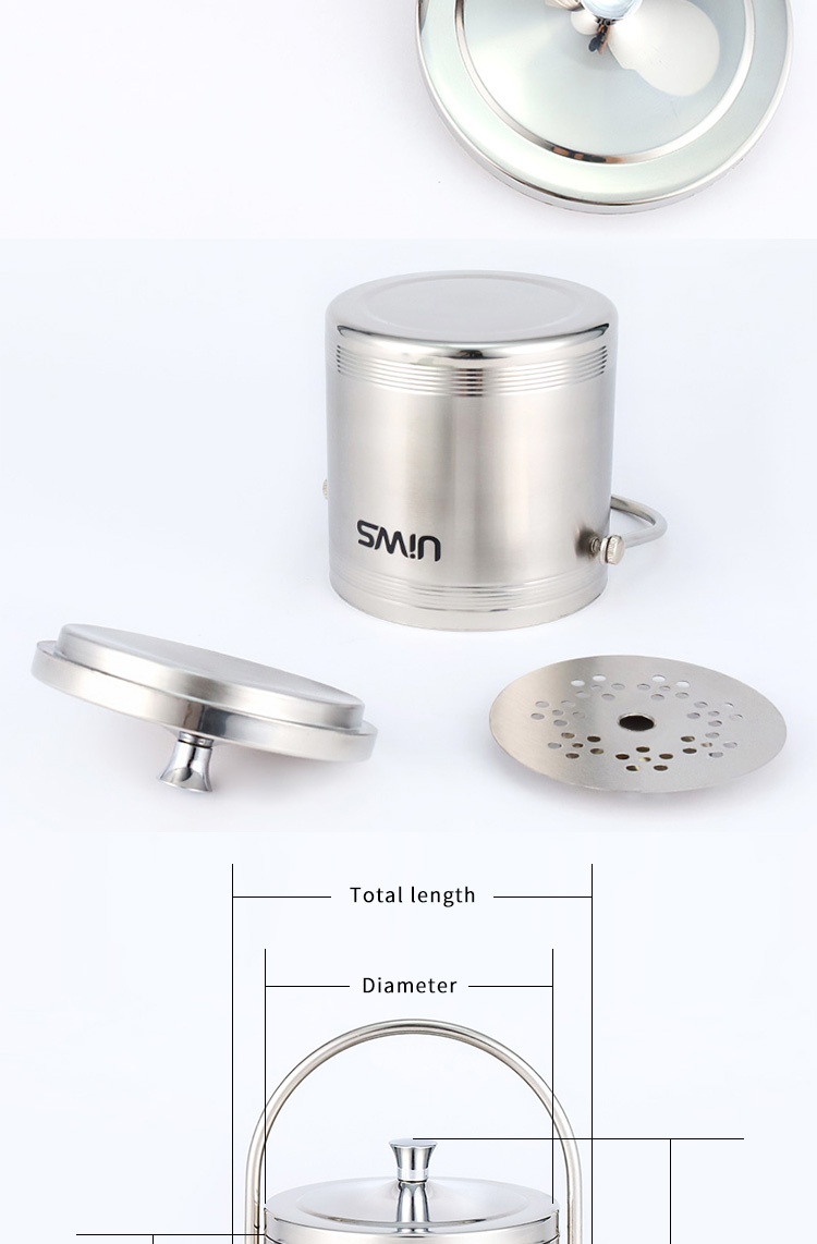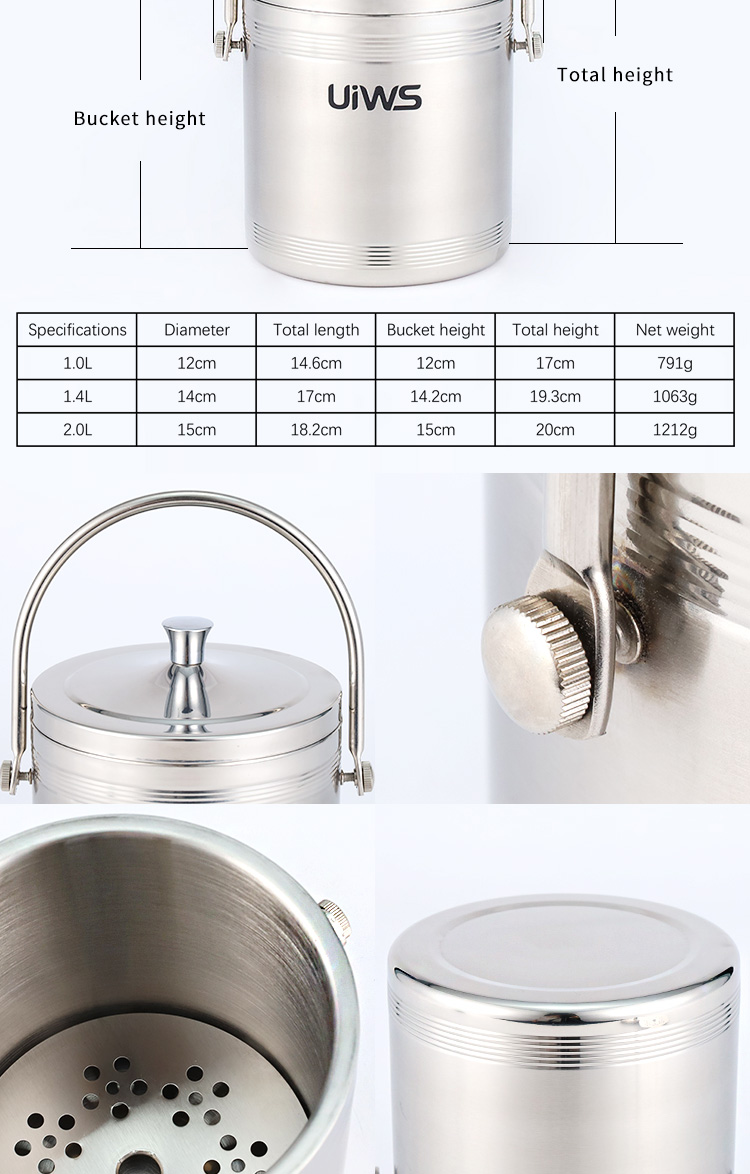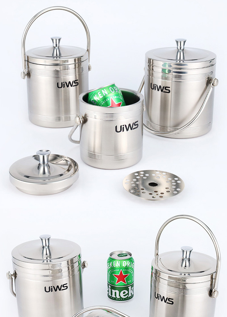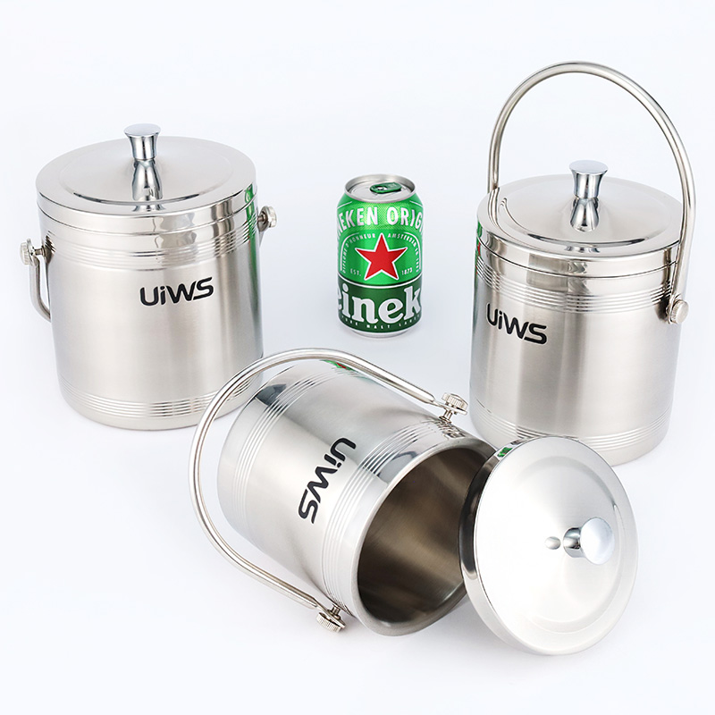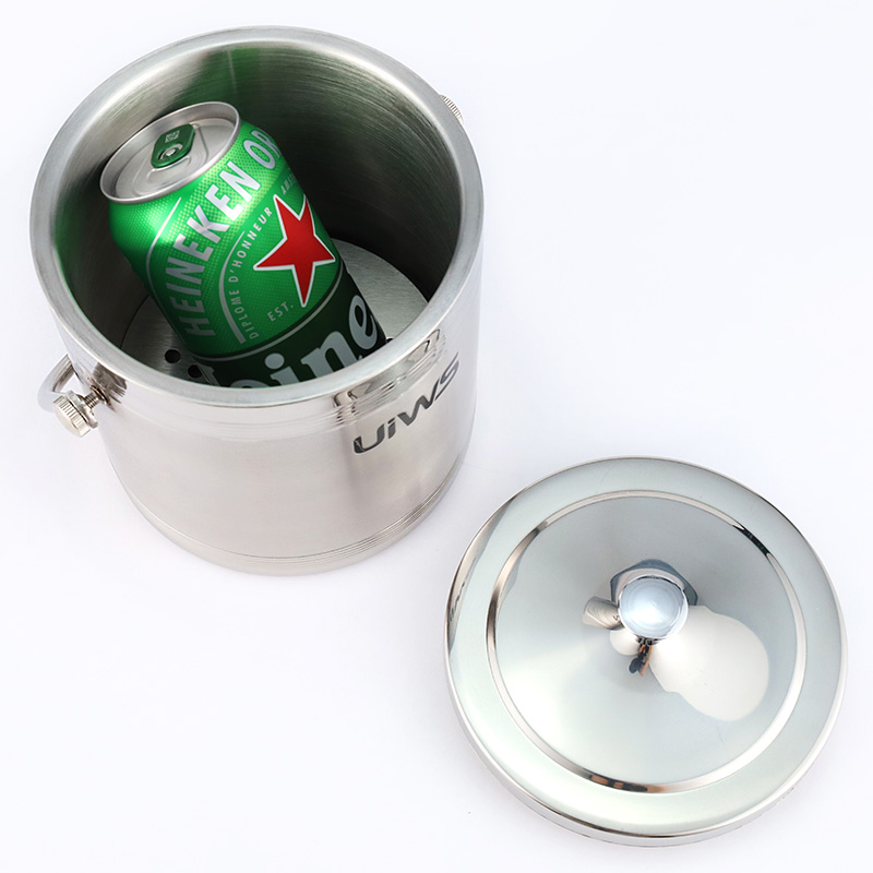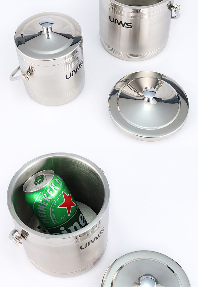 The stylish stainless steel double-layer hollow ice bucket can store ice cubes for a longer time.