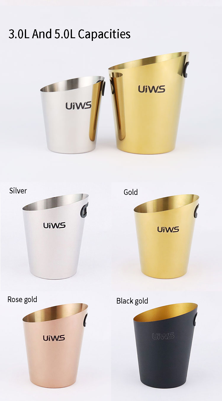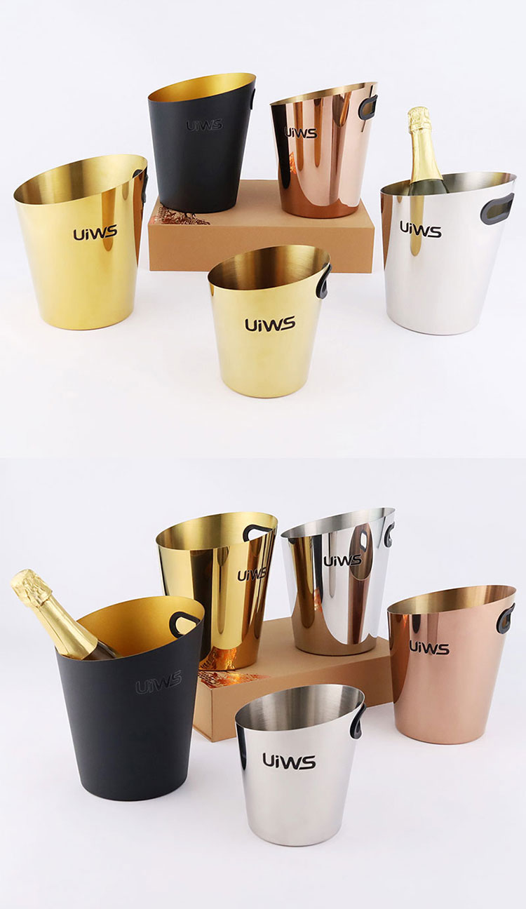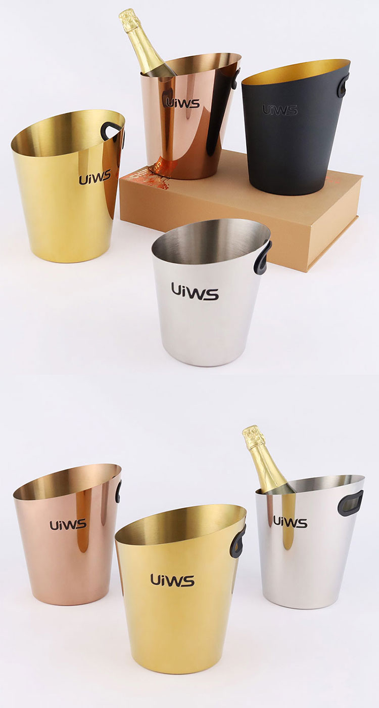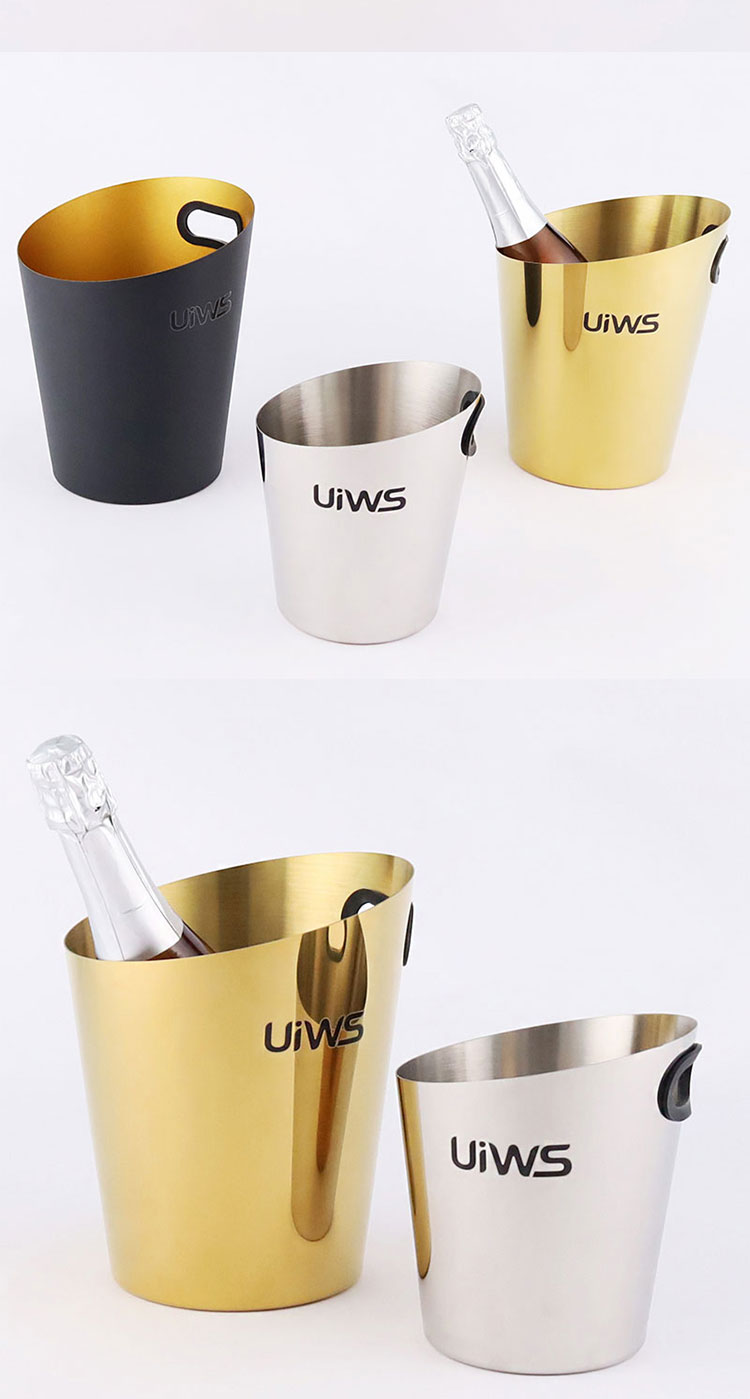 Stainless steel ice bucket allows the entire bottle of champagne to be refrigerated for a longer period of time.
