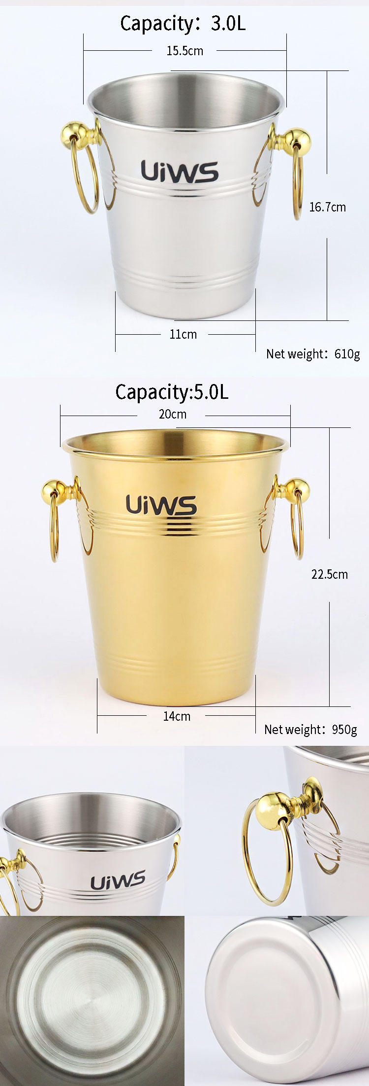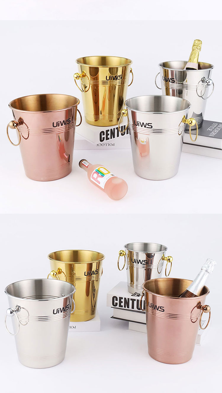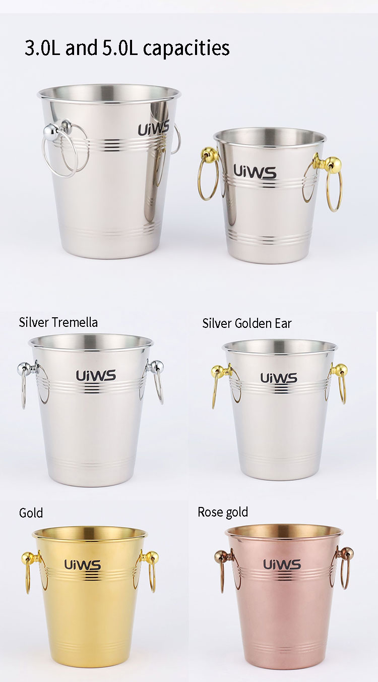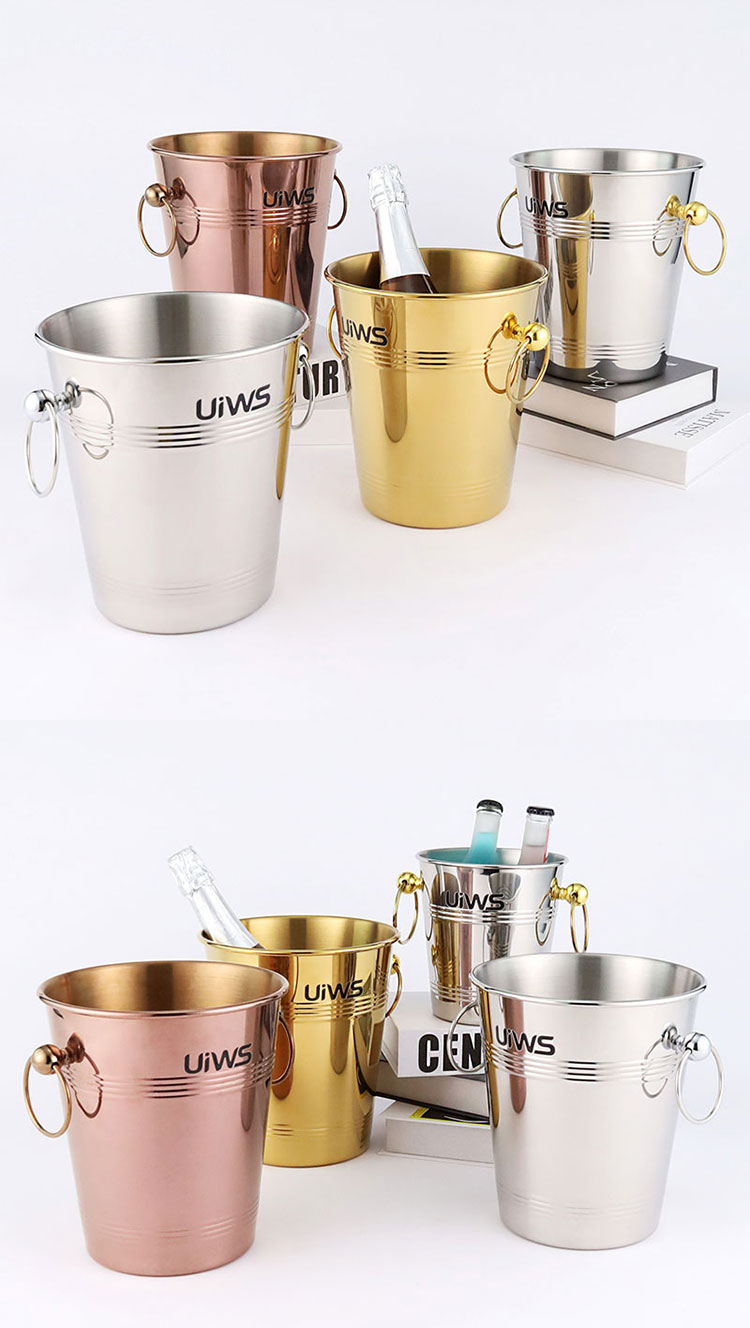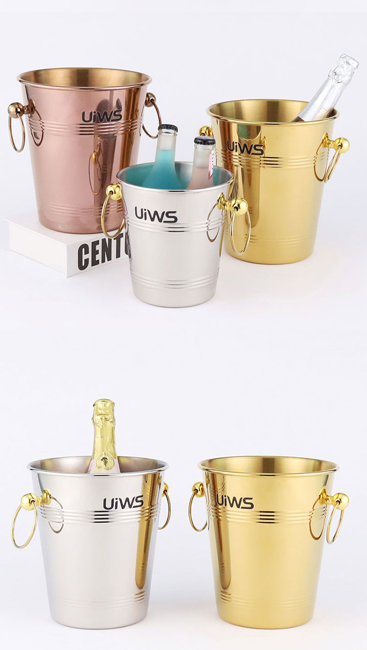 Stainless steel ice bucket allows the entire bottle of champagne to be refrigerated for a longer period of time.