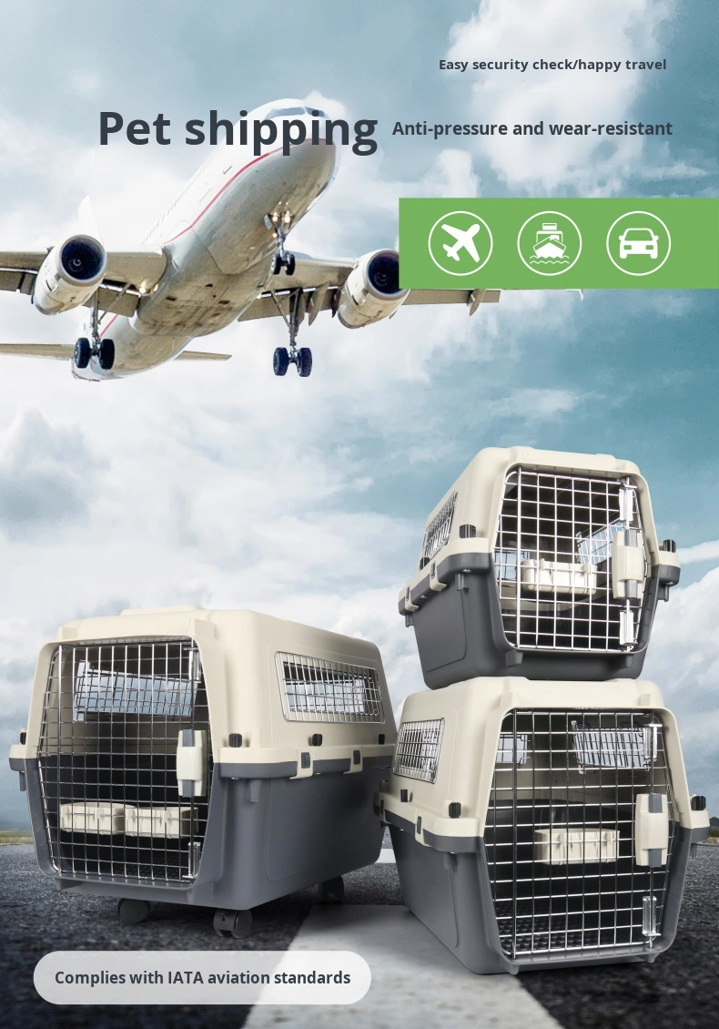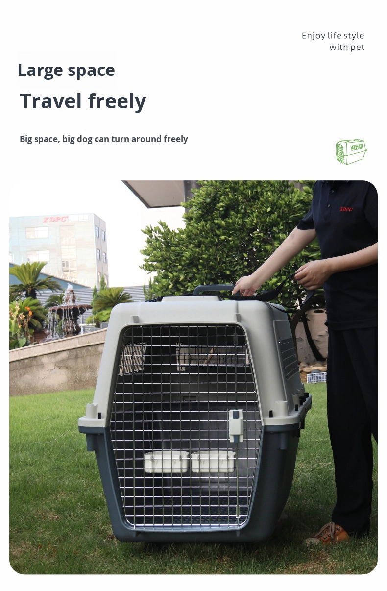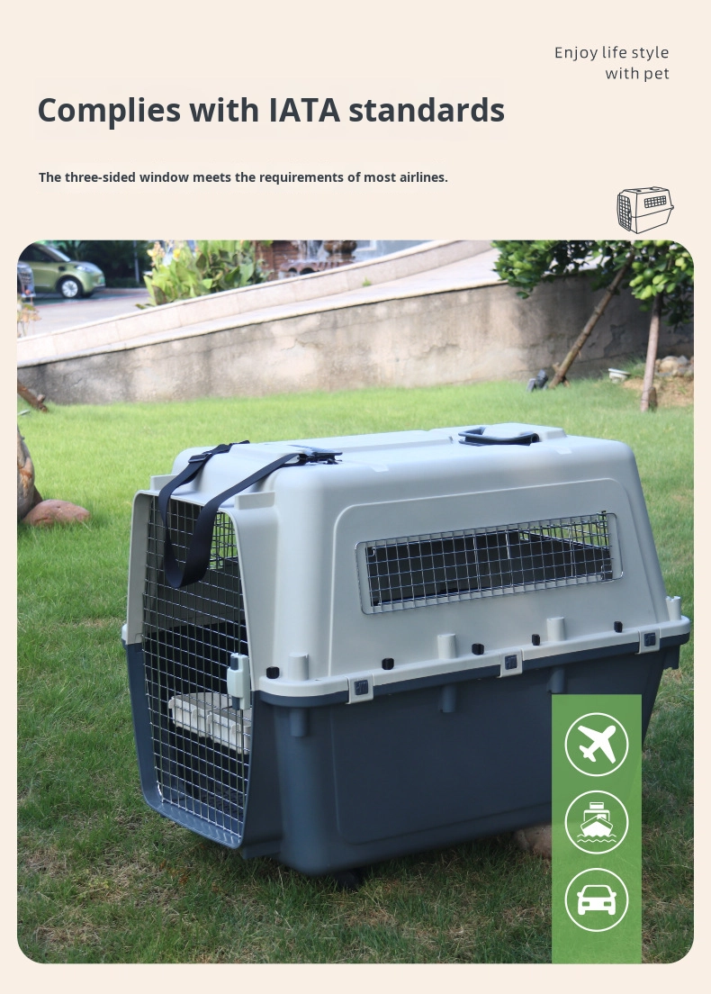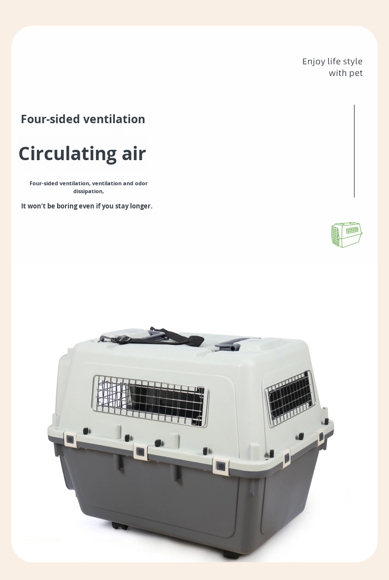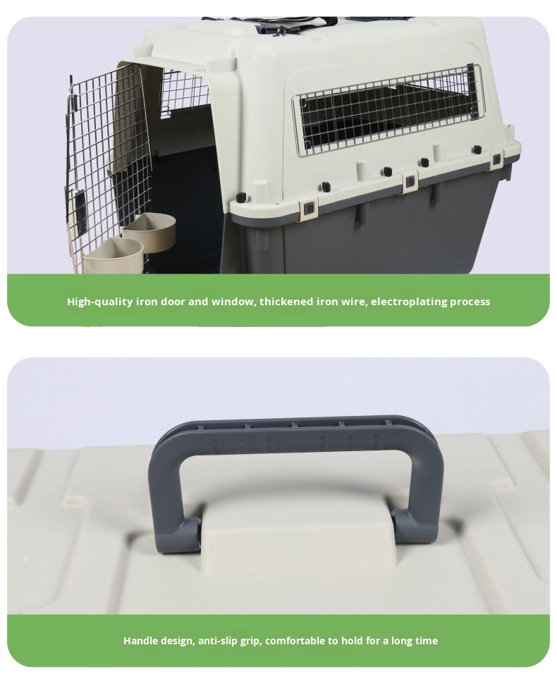 Pet aviation cases come in 6 models with three sided iron windows, meeting the requirements of most airlines. They are resistant to pressure and wear, have a traction rope design, are ventilated on all sides, and have circular ventilation. They come with a handle design, anti slip grip, fixed iron door holes, and window metal fence style. They have a large space for easy travel, one key lock buckle, two-way door lock, and safety guarantee. They can be used as an outdoor aviation case or as a dog house at home
