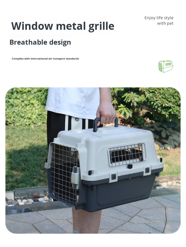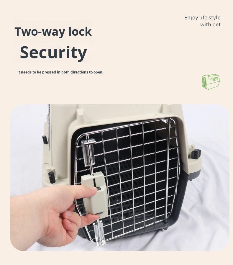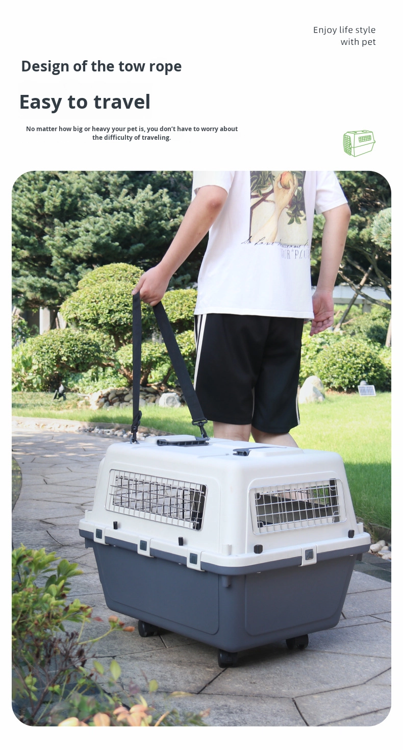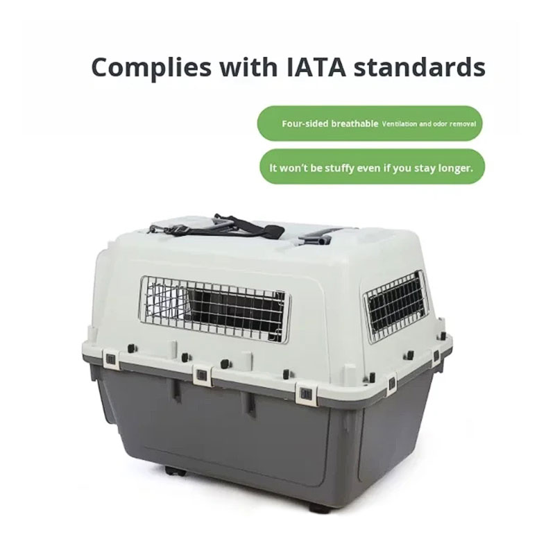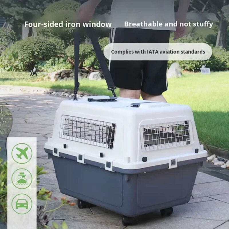 Pet aviation cases come in 6 models with three sided iron windows, meeting the requirements of most airlines. They are resistant to pressure and wear, have a traction rope design, are ventilated on all sides, and have circular ventilation. They come with a handle design, anti slip grip, fixed iron door holes, and window metal fence style. They have a large space for easy travel, one key lock buckle, two-way door lock, and safety guarantee. They can be used as an outdoor aviation case or as a dog house at home