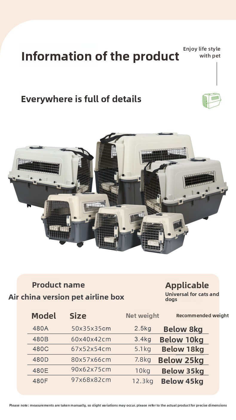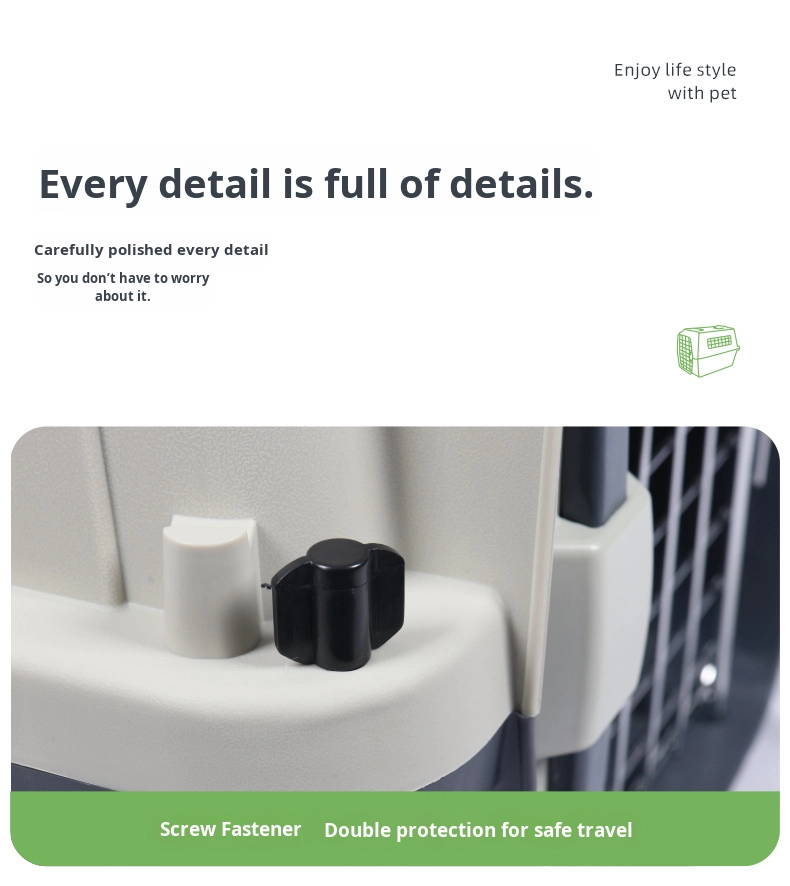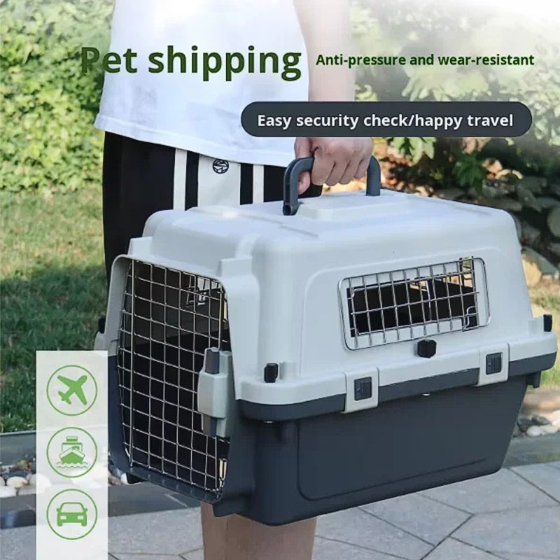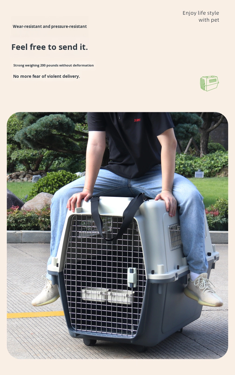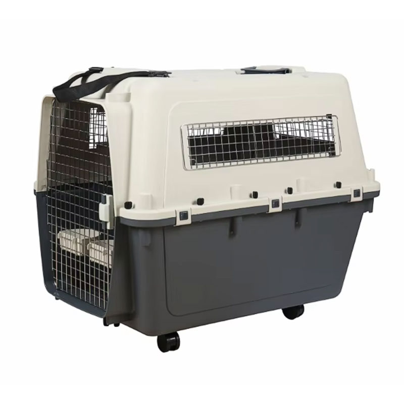 Pet aviation cases come in 6 models with three sided iron windows, meeting the requirements of most airlines. They are resistant to pressure and wear, have a traction rope design, are ventilated on all sides, and have circular ventilation. They come with a handle design, anti slip grip, fixed iron door holes, and window metal fence style. They have a large space for easy travel, one key lock buckle, two-way door lock, and safety guarantee. They can be used as an outdoor aviation case or as a dog house at home